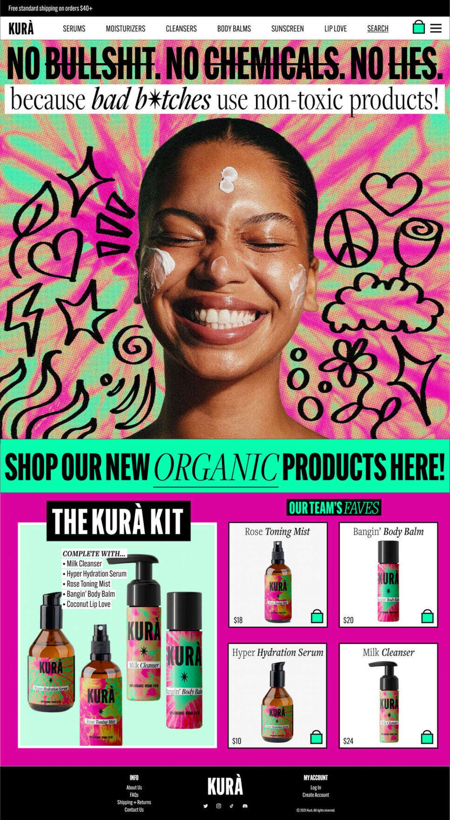 The concept for Kurà blossomed from the idea that young adults like myself have such limited access to skin-safe, non-toxic skincare. So for this brand, I focused on setting it aside by using unique, eye-catching packaging and dermatologist-tested ingredients. Kurà's organic beauty products are unpretentious, accessible, affordable, and most of all *cool*. Kurà is for YOU!