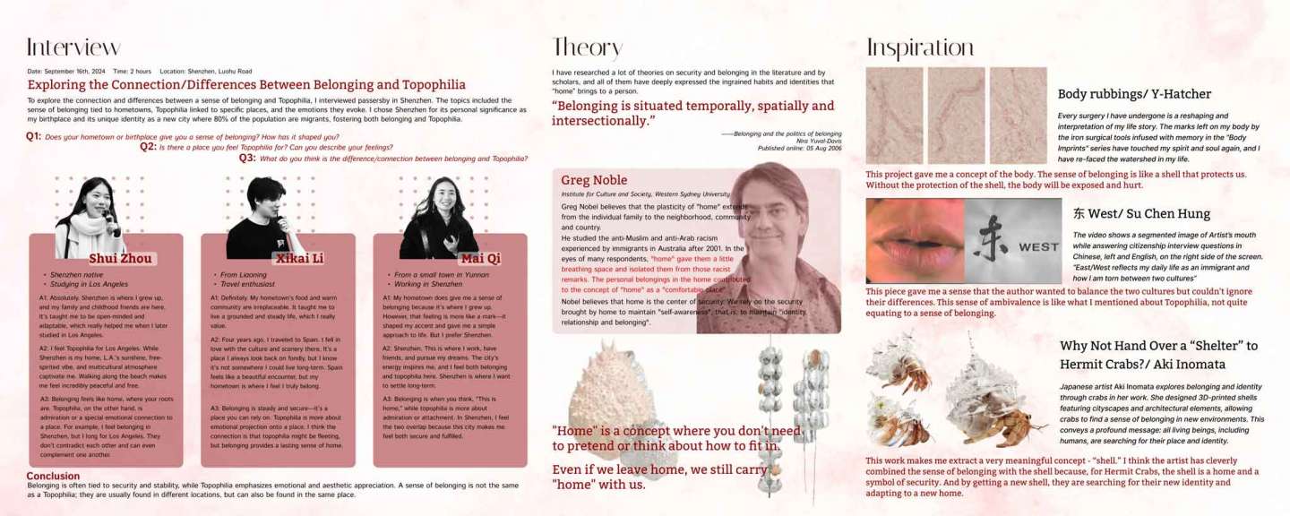 In this work, the invisible shell on the human body is embodied, this shell is the sense of belonging of human beings, once the shell is taken down the human beings will lose their self-identity. Even if one has developed an attachment to a certain piece of land, it still does not mean that one has a sense of belonging.