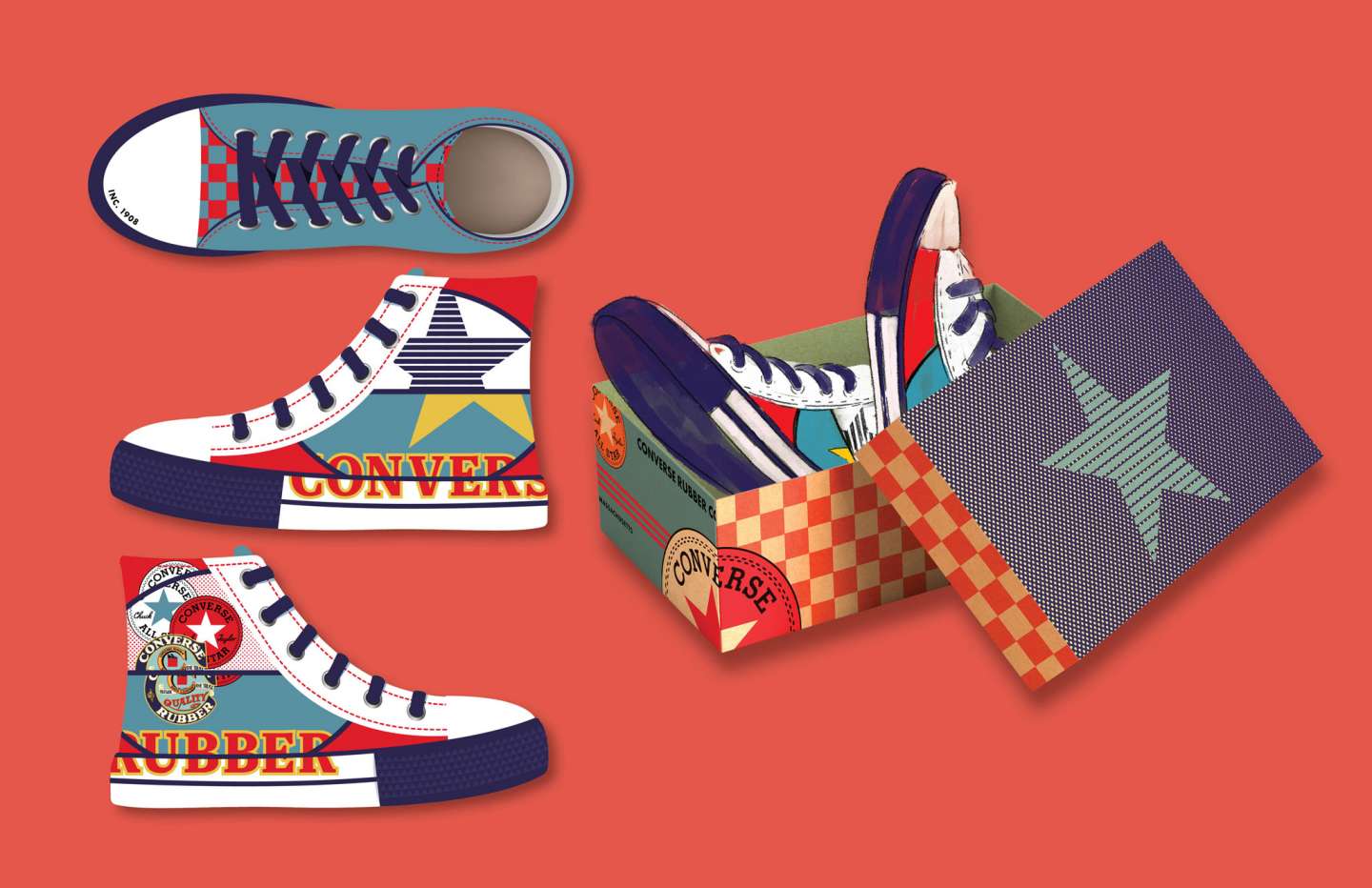 A series of Converse sneakers highlighting the brand’s longevity. Design for the shoes takes elements of the company’s history–logo designs, vintage ads, origins as a rubber company–and reimagines them in new and exciting ways. This is meant to represent the brand’s timeless nature and how they continue to remain relevant.